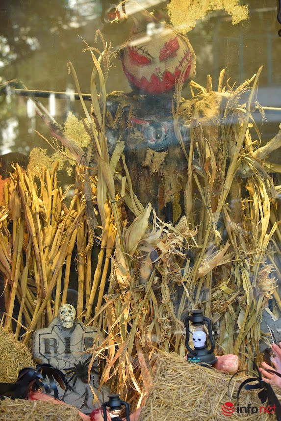 Lễ hội Halloween sắp cận kề, những ngày này trên phố Hàng Mã, nhiều đồ trang trí kinh dị được dựng trước các cửa hàng, khiến người đi đường không khỏi giật mình.