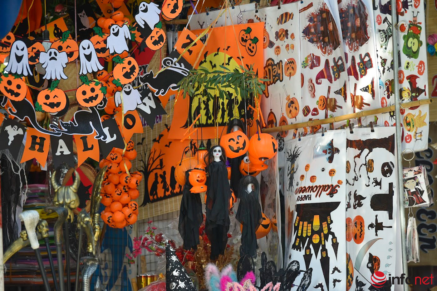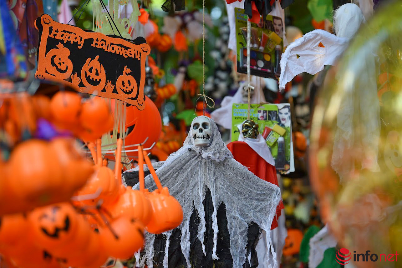 Theo ghi nhận của PV Infonet, vào những ngày này tại các cửa hàng dọc tuyến phố Hàng Mã (quận Hoàn Kiếm, Hà Nội) rao bán nhiều sản phẩm độc, lạ, càng “dị” càng thu hút các bạn trẻ. Đặc biệt là những bộ trang phục hình ma quỷ, dị nhân rất được khách hàng ưa chuộng.Gần như tất cả các cửa hàng trên phố đều bày bán các mặt hàng phục vụ cho ngày Halloween.Không khí Halloween tràn ngập trên phố Hàng Mã với gam màu chủ đạo cam, đen kinh dị.Các sản phẩm như đồ hóa trang, đồ vật trang trí phục vụ lễ hội Halloween... khá đắt hàng.Các sản phẩm có giá đa dạng. Ví dụ, các loại mặt nạ đơn giản có giá từ 30.000 – 60.000 đồng/chiếc, mặt nạ ma có giá từ 120.000 – 350.000 đồng/chiếc. Đáng chú ý, mặt nạ "zombie máu" có giá tới 500.000 đồng/chiếc.Lễ hội Halloween diễn ra vào ngày 31/10 hàng năm, được du nhập vào Việt Nam trong những năm gần đây và ngày càng được giới trẻ đón nhận.Nhiều đồ trang trí kinh dị được dựng trước các cửa hàng, khiến người đi đường không khỏi giật mình.Mặt hàng được quan tâm nhiều nhất là giỏ đựng kẹo bí ngô và đèn bí ngô trang trí. Mỗi quả thường được bán với giá 70.000 - 150.000 đồng tùy từng kích cỡ.Nhiều cửa hàng cho thuê đồ hóa trang với giá lên cả trăm nghìn một ngày.Halloween (tên đầy đủ là All Hallows’ Evening) là ngày đánh dấu sự kết thúc vụ mùa thu hoạch và bắt đầu mùa đông, tưởng nhớ những người đã qua đời. Halloween là một lễ hội truyền thống và đặc biệt ở phương Tây với biểu tượng là những trái bí ngô được khoét hình khuôn mặt.