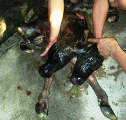 Đổ xô đi xem bò mẹ sinh bê con 2 đầu ở Nghệ An