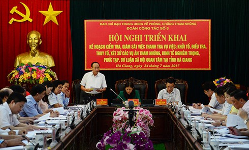 Tahy mặt Đoàn công tác số 8 của BCĐ Trung ương về PCTN, Thứ trưởng Bộ Công an Lê Quý Vương đã công bố kế hoạch, các quyết định của Ban Chỉ đạo Trung ương về phòng, chống tham nhũng về việc thành lập các đoàn công tác kiểm tra, giám sát việc thanh tra vụ việc; khởi tố, điều tra, truy tố, xét xử các vụ án tham nhũng, kinh tế nghiêm trọng, phức tạp, dư luận xã hội quan tâm; lịch làm việc của Đoàn công tác số 8 với các cơ quan, đơn vị được kiểm tra, giám sát của tỉnh Hà Giang.