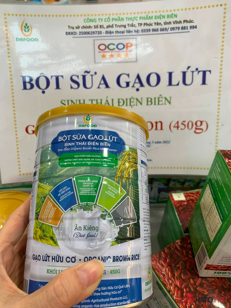 Chia sẻ với PV Infonet, bà Hoàng Thị Thùy Linh, phụ trách kết nối đầu ra cho sản phẩm Công ty CP Thực phẩm DBFood ở TP Phúc Yên (Vĩnh Phúc) cho biết: DBFood có 3 dòng sản phẩm chủ lực gồm bột sữa gạo lứt sinh thái Điện Biên - ăn kiêng, bột sữa gạo lứt sinh thái Điện Biên – vị mặn, bột sữa gạo lứt sinh thái Điện Biên - vị ngọt đã dần khẳng định được chỗ đứng trên thị trường nhờ sản phẩm chất lượng, độc đáo và đã đạt chứng nhận OCOP 4 sao từ năm 2020.