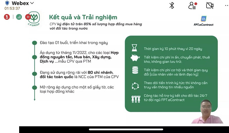 Nằm trong Top đầu của lĩnh vực sản xuất thức ăn chăn nuôi, trang trại và thực phẩm, C.P Việt Nam không nằm ngoài xu thế chuyển đổi số, tuy nhiên, quá trình triển khai hợp đồng điện tử được tiến hành chậm hơn nhiều đơn vị khác.