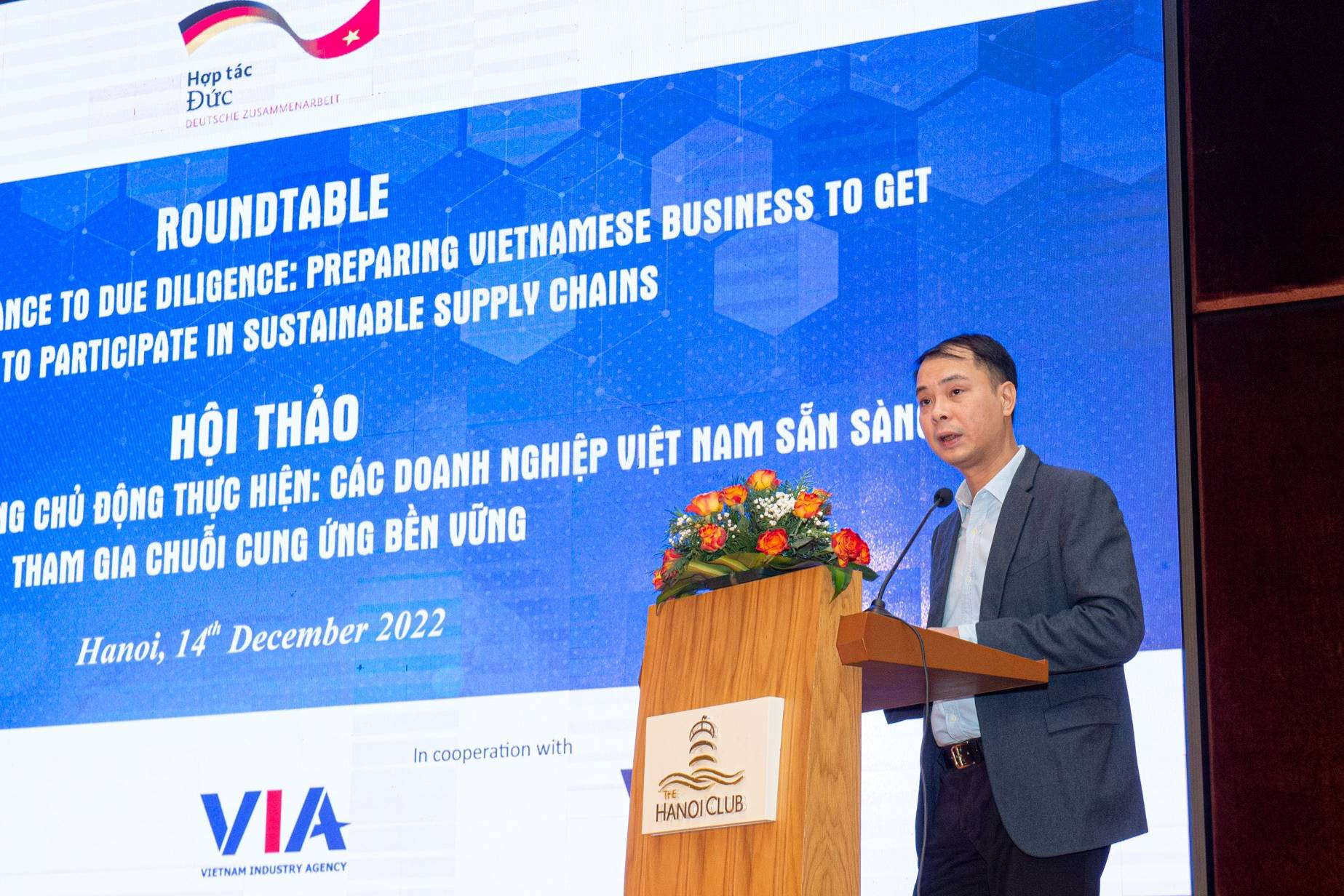 Ngày 14/12, được sự ủy thác của Bộ Hợp tác Kinh tế và Phát triển Liên bang Đức, Tổ chức Hợp tác Phát triển Đức (GIZ) phối hợp với Cục Công nghiệp, Bộ Công Thương tổ chức hội thảo “Chuyển từ tuân thủ sang chủ động thực hiện: Các doanh nghiệp Việt Nam sẵn sàng tham gia chuỗi cung ứng bền vững”.