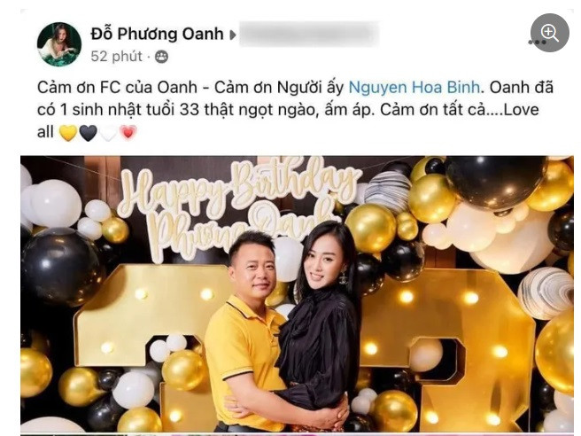 Mới đây nhất, sinh nhật tròn 33 tuổi của diễn viên Phương Oanh, trên trang cá nhân của mình, Shark Bình đã khoe loạt ảnh trong tiệc sinh nhật của Phương Oanh.