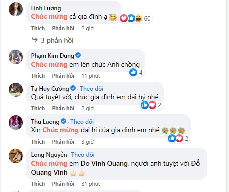 Chỉ còn vài tiếng nữa là đến giờ phút linh thiêng nhất, anh xin chúc cho 2 em yêu của anh sẽ trăm năm hạnh phúc, đầu bạc răng long, con đàn cháu đống. Anh sẽ luôn là người đồng hành để vun vén cho gia đình nhỏ xinh đẹp của tụi em nhé!