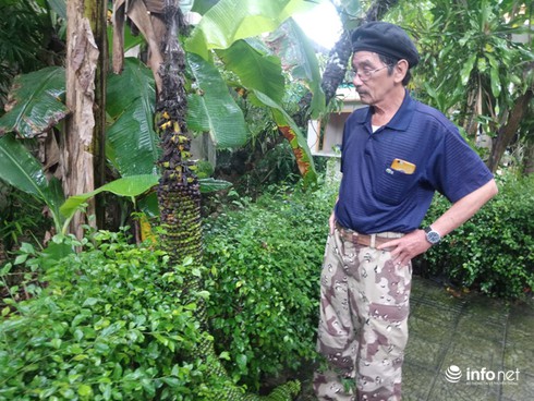 Ông Tôn Thất Hộ đang chia sẻ về nguồn gốc của bụi chuối cho PV nghe. |