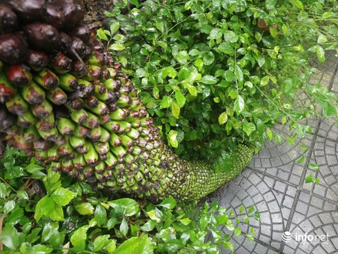 Theo nghi nhận của PV Infonet, bụi chuối có khoảng 6 cây và chỉ có duy nhất 1 cây đang có buồng với buồng chuối trải dài từ ngọn cây xuống dưới sân nhà, như con rồng. Phần ngọn cây đã bị gãy và quả ở các nải mọc trước đã chín vàng, ăn rất ngọt và thơm.