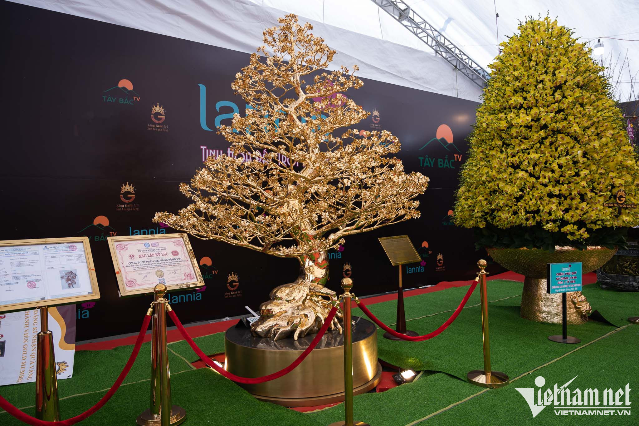Một cây mai mạ vàng 24k mới được trưng bày tại một gian hàng kinh doanh hoa Tết ở chợ cây cảnh Mỹ Đình (quận Nam Từ Liêm, Hà Nội). Cây mai độc đáo này có khối lượng 288kg, cao 3m, đường kính 2m; thân cây dáng rồng, được đúc bằng đồng nguyên khối, mạ vàng với số lượng 121 chỉ vàng 24k.