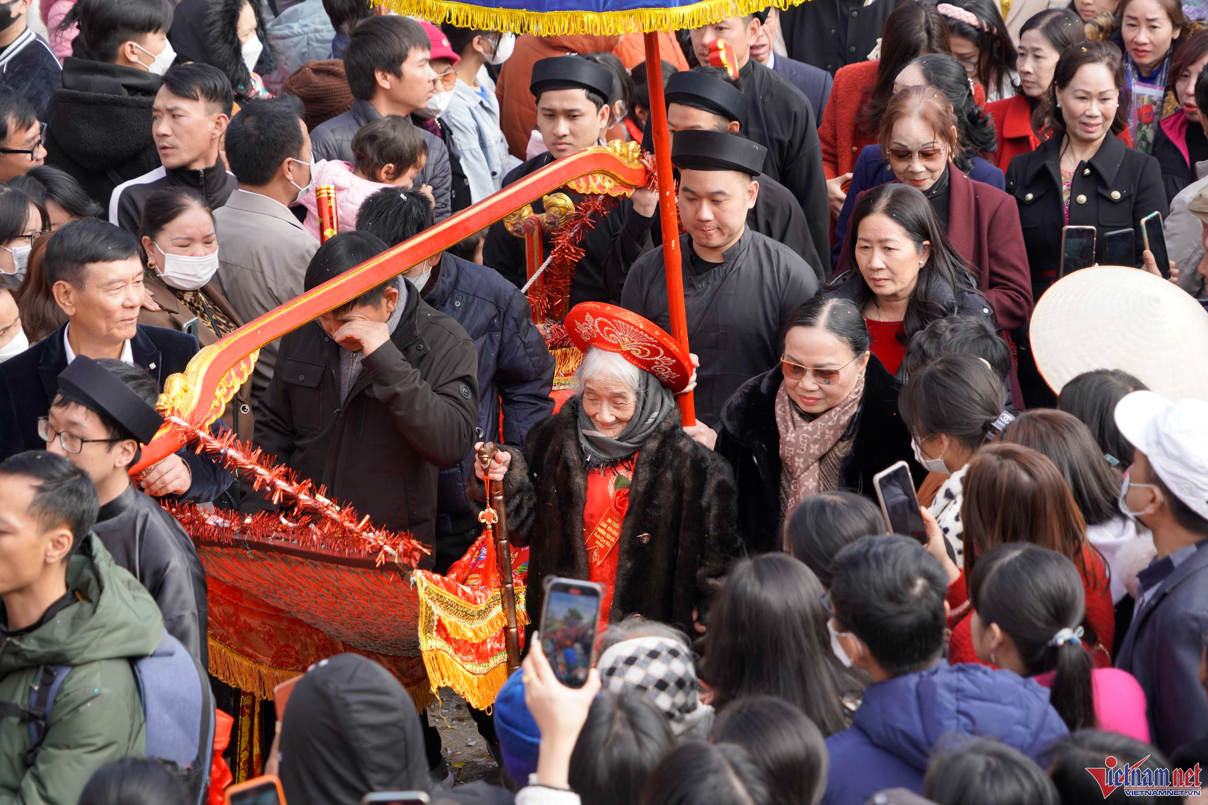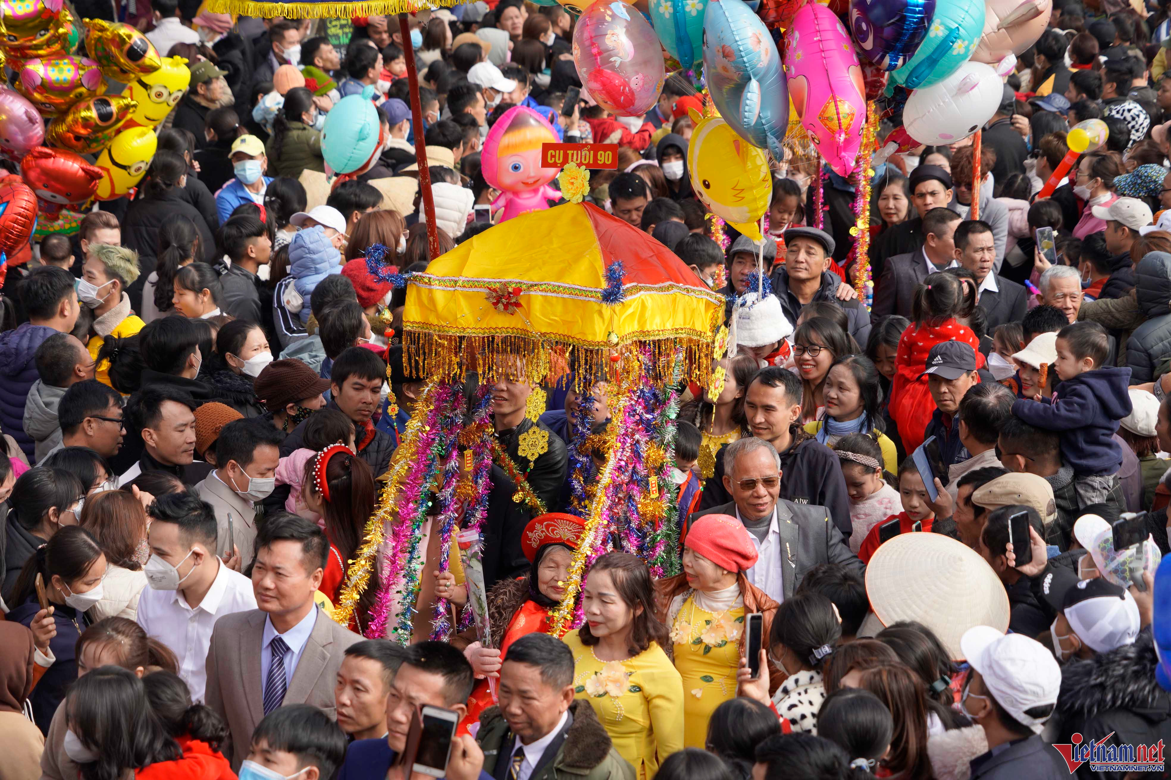 Để tránh tắc đường, nhiều gia đình đã rước cụ thượng từ sáng sớm. Tuy nhiên, từ khoảng 8h hôm nay, dòng người đổ về xem lễ hội quá đông dẫn tới cảnh tắc đường kéo dài gần 2km.