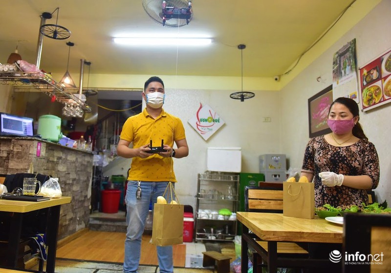 Sự sáng tạo đưa flycam vào bán hàng vừa giúp quán ăn thu hút khách bởi sự mới lạ, hấp dẫn; lại còn giúp nhân viên trong quán tránh tiếp xúc với nhiều người.