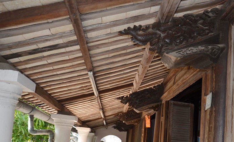 Phần nhiều các tác phẩm điêu khắc trên gỗ được để mộc không sơn phết, góp phần làm cho bộ kèo bề thế trở nên nhẹ nhàng, thanh thoát. Hiếm thấy ngôi nhà xưa nào có bộ kèo chạm trổ đẹp như thế.