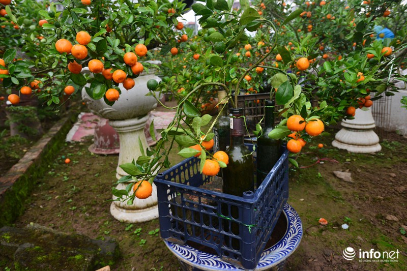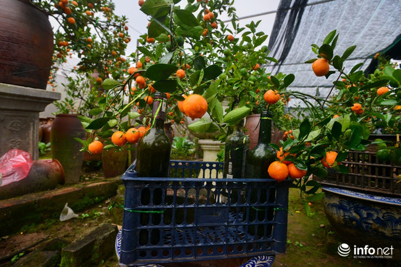 Không nản chí, người chủ vườn tiếp tục nghiên cứu và dần hoàn thiện kỹ thuật. Đây là năm đầu tiên vườn quất nhà anh Quang cho ra nhiều quất cảnh trồng trong chai thủy tinh. Ước tính năm nay anh làm được khoảng hơn 50 chai quất và đều đã được bán hết. Giá của mỗi cây quất dao động trung bình trong khoảng từ 500.000-1.000.000 đồng/ chai. |