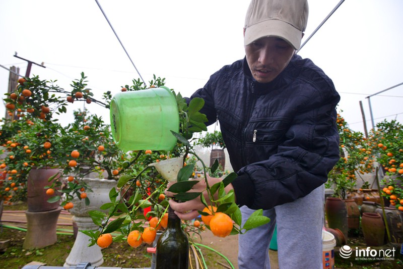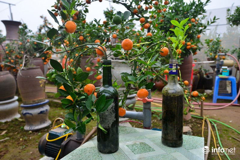 Việc trồng quất trong chai cũng đòi hỏi nhiều kỹ thuật hơn so với trồng quất ở vườn. Bởi lẽ cây chỉ có một diện tích đất rất nhỏ, lại phải chứa cả bộ rễ cây nên việc chăm sóc phải cực kỳ cẩn thận. |