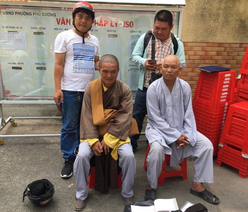 Đến hơn 11h, đội hiệp sĩ tiếp cận 2 sư thầy để làm rõ sự việc thì phát hiện đây là 2 người giả danh sư thầy. Cả 2 đối tượng thừa nhận từ Tiền Giang lên Bình Dương được 2 ngày và mua bộ áo thầy chùa 200 ngàn, sau đó mặc vào và đi bán đồ cúng.