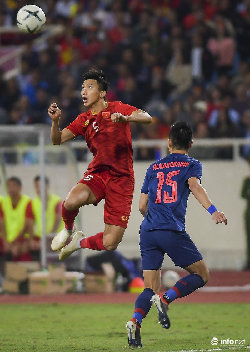 Văn Hậu (áo đỏ) đang thể hiện được bản lĩnh của mình ở đấu trườngSEA Games 30. |