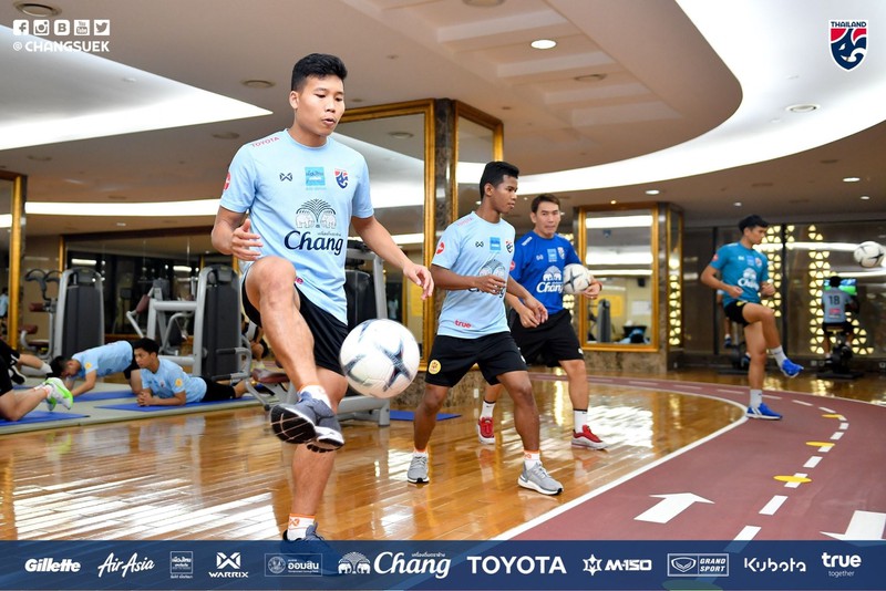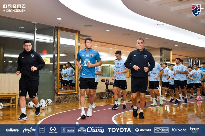 Trước đó, tuyển Thái Lan lên kế hoạch tập buổi đầu tiên vào chiều 16/11 tại Trung tâm thể thao Viettel. Tuy nhiên, đã có sự thay đổi bất ngờ.(Ảnh: Changsuek).