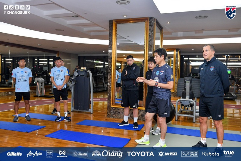 Theo thông tin từ Liên đoàn Bóng đá Thái Lan, ông Nishino đã lên kế hoạch có buổi tập ngay trong chiều 16/11 song sau đó đã thay đổi ý định khi cho các cầu thủ Thái Lan tập nhẹ ngay tại phòng gym của khách sạn trong khoảng một giờ vào lúc 18 giờ 30 tối ngày 16/11, nhằm hồi phục thể lực cho các học trò sau hành trình kéo dài năm tiếng từ Kuala Lumpur tới Thủ đô Hà Nội và di chuyển về khách sạn.(Ảnh: Changsuek).