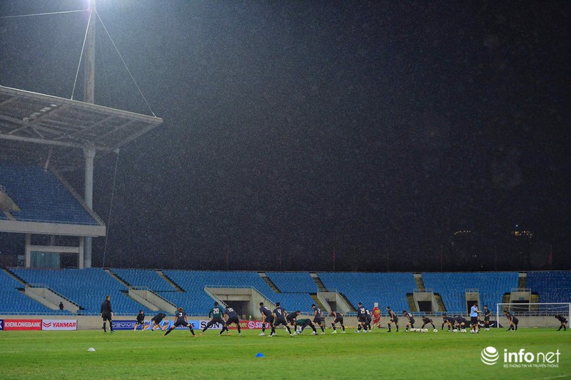 Buổi tập diễn ra dưới cơn mưa khá nặng hạt trên SVĐ Mỹ Đình.