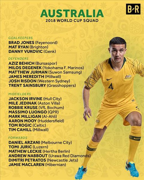 Thủ môn: Brad Jones (Feyenoord), Mat Ryan (Brighton), Danny Vukovic (Genk)