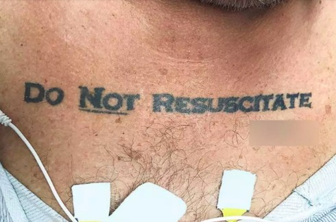 "Nhiều khả năng ông ấy đã xăm lúc say xỉn", đại diện Bệnh viện Đại học Miami nhận định. Trên thực tế, năm 2012, y văn Mỹ từng ghi nhận một bệnh nhân yêu cầu được cứu sống dù xăm dòng chữ DNR (viết tắt của đừng cấp cứu).