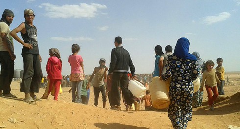 Người tị nạn Syria tại trại Rukban tập trung để lấy nước. |
