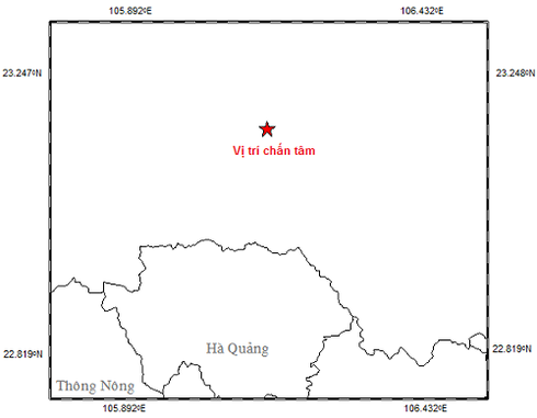 Động đất xảy ra gần biên giới Trung Quốc - Việt Nam, cách địa phận huyện Hà Quảng, tỉnh Cao Bằng khoảng 30km.