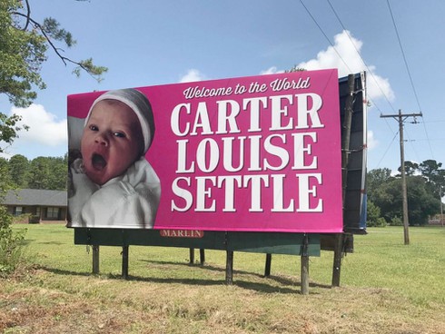 Để thể hiện niềm hạnh phúc, một tấm biển cao gần 4 m, dài hơn 7 m với tấm ảnh của cô bé và dòng chữ: “Chào mừng Carter Louise Settle đến với thế giới” đã được dựng trên bãi đất trống nằm giữa khu vực Bluffton và Savannah bên cao tốc South Carolina.