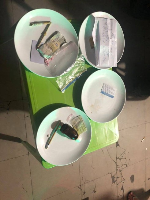 Công an thu giữ 1 gói nghi là ma túy tổng hợp, 15 viên nén gồm các màu: nâu, trắng và hồng (nghi thuốc lắc), 1 đĩa khay hàng cùng nhiều bọc nilon đã qua sử dụng; 4 bộ dụng cụ sử dụng ma túy (đĩa, thẻ ATM, giấy bạc…).