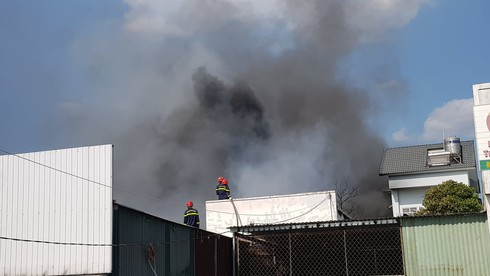 Đồng Nai: Cháy dữ dội tại xưởng mút, khói ngút trời