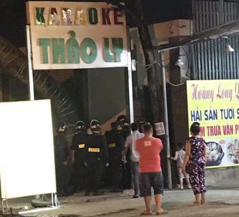 Lực lượng công an, Cảnh sát cơ động ập vào quán karaoke Thảo Ly. |