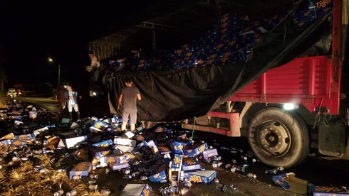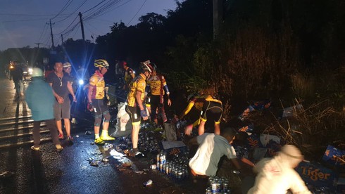 Đồng Nai: Người dân gọi nhau gom giúp hơn 500 thùng bia bị đổ xuống đường
