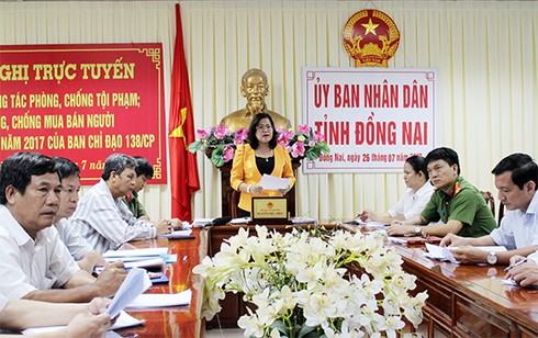 Đồng Nai đề ra nhiệm vụ nhằm thực hiện tốt công tác phòng, chống tội phạm mua bán người 2018. (Ảnh: Lãnh đạo tỉnh phát biểu tại Hội nghị trực tuyến tháng 7/2017) |