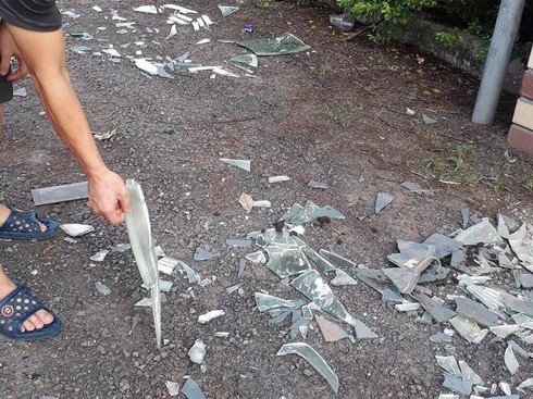 Nhiều mảnh kính vỡ tại hiện trường. (Ảnh: L.T) |