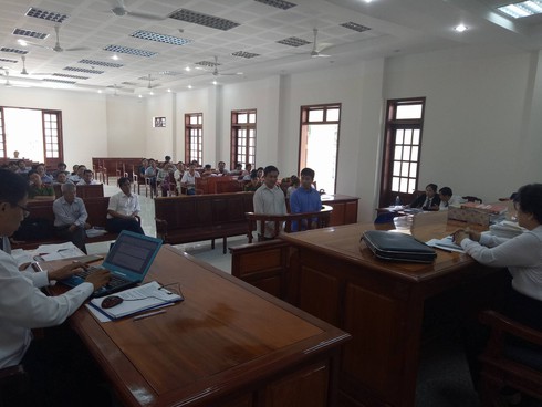 Quang cảnh phiên tòa xét xử sơ thẩm vụ sập cầu Ghềnh (Đồng Nai). |