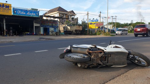 Cú giật mạnh của tên cướp khiến nạn nhân cùng xe máy bị kéo ngã xuống đường, thương nặng. Phát hiện sự việc, người dân nhanh chóng đưa nạn nhân đi cấp cứu trong tình trạng chấn thương vùng vai và đầu.