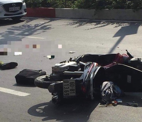 Đúng lúc này, 1 cô gái đi xe SH biển số Đồng Nai (60) đi tới, thấy vụ tai nạn đã phải phanh gấp cũng bị ngã xuống đường, nhưng rất may mắn chỉ bị xây xát nhẹ.