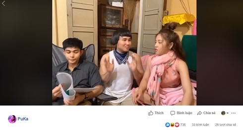 Puka chia sẻ đoạn clip hài hước khi cô và bạn diễn nhập vai vào các nhân vật đang xuất hiện trêm mạng xã hội. Nữ diễn viên vào vai nhân vật - Vinh Nguyễn Thị để Review trái cóc đông đá. Bên cạnh đó, diễn chung với cô là Minh Tiến vai bé Sa và Jun Phạm trong vai Trần Dần. |