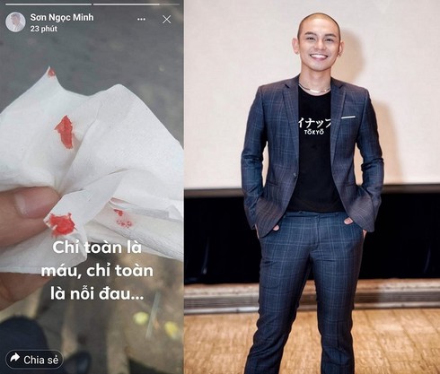 Sơn Ngọc Minhđăng ảnh một tờ giấy với những vết máu, anh chia sẻ: “Chỉ toàn là máu, chỉ toàn là nỗi đau” . Mới đây anh diện bộ vest xám kẻ sọc caro lịch lãm và ngồi vị trí giám khảo của một cuộc thi tại TP.HCM. Thời gian qua, Sơn Ngọc Minh trở thành tâm điểm chú ý của cộng đồng mạng, sau khi ảnh kêu gọi 10 triệu like để tự tử cùng với việc lên tiếng chia tay người yêu. |