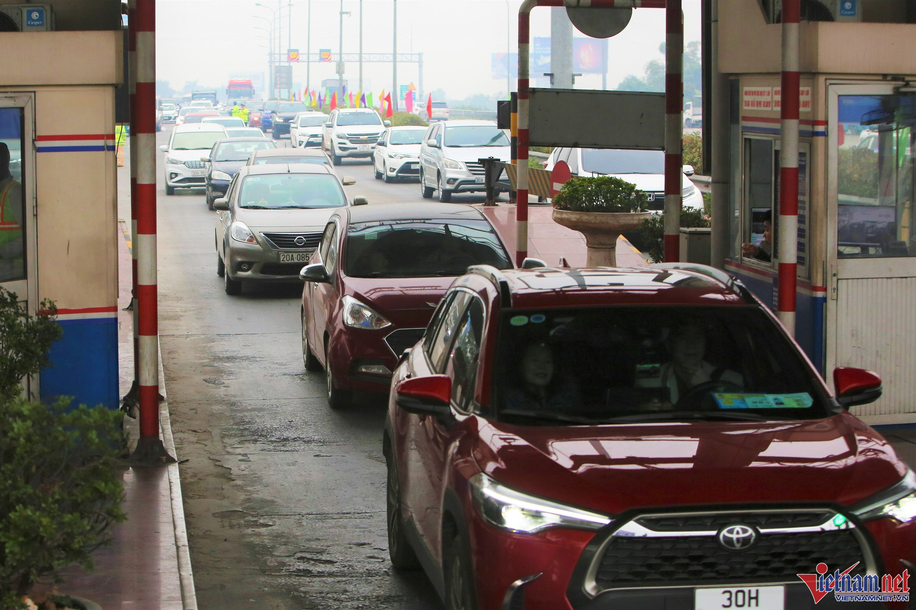 Theo ghi nhận, dòng ô tô xếp hàng di chuyển chậm kéo dài 1km trước khu vực trạm thu phí.