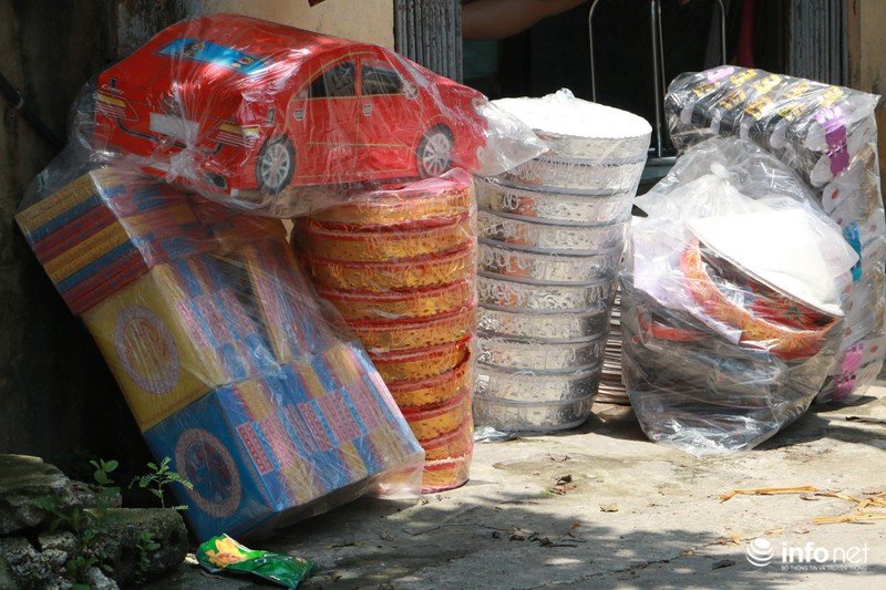 Không khó để bắt gặp những sản phẩm chuyên phục vụ cho "người cõi âm" trên các con đường trong làng.
