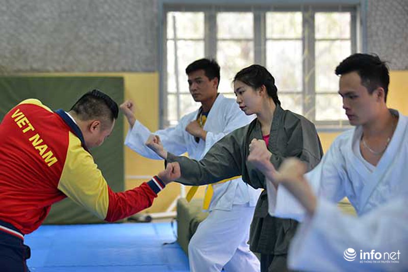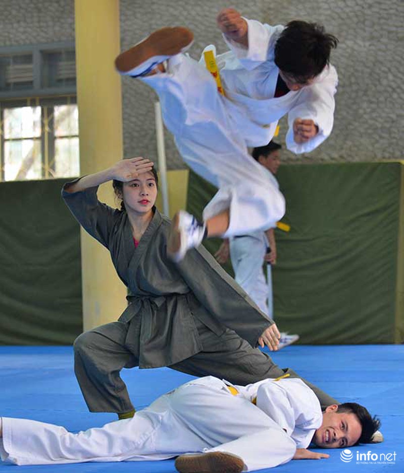 … Và Hoài Thương đã chuẩn bị cho màn trình diễn này trong khoảng 2 tuần, với sự hướng dẫn của thầy giáo Trần Ngọc Hải (giảng viên bộ môn Võ thuật của trường CĐ Cảnh sát Nhân dân 1) và sự tham gia của các học viên cùng trường. |
