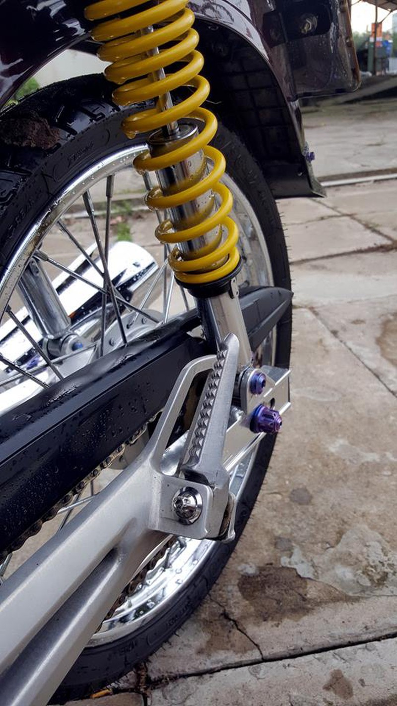 Dàn chân sử dụng cần số hai chiều nhôm có ngoại hình khá đẹp, phù hợp với tất cả dòng xe số phổ thông có mặt tại Việt Nam - Sử dụng gác chân Dream lùn phía sau để tạo sự mới lạ cho chiếc xe. |