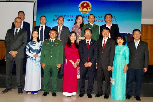 Phát biểu tại buổi lễ, Đại sứ Đỗ Bá Khoa nêu bật những thành tựu trong 74 năm qua và sau 33 năm của quá trình Đổi mới, Việt Nam đã trở thành một quốc gia có an ninh chính trị ổn định, nền kinh tế năng động, được lãnh đạo các nước và bạn bè quốc tế tin tưởng và là điểm đến hấp dẫn đối với các nhà đầu tư và khách du lịch nước ngoài.