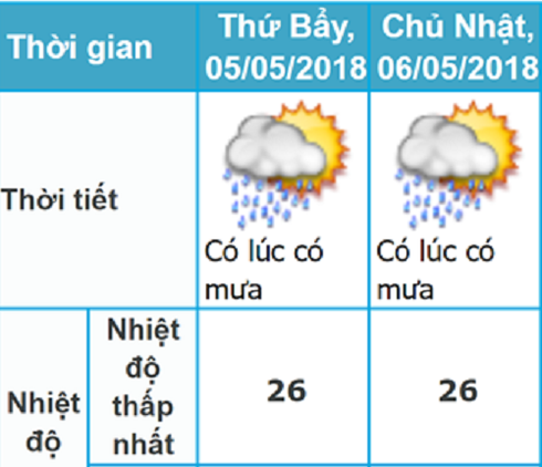 Dưới đây là dự báo thời tiết cuối tuần ngày 05-06/5 trên cả nước: