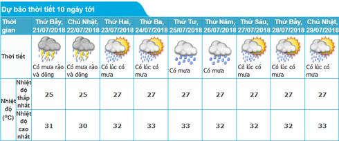 Dự báo khu vực Hà Nội 10 ngày tới: