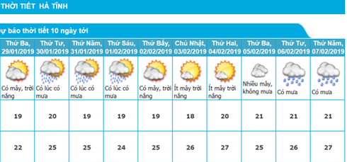 Dự báo thời tiết Tết Nguyên đán 2019 Hà Tĩnh |