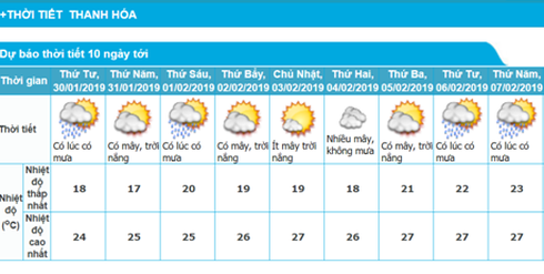 Dự báo thời tiết Tết Nguyên đán 2019 Thanh Hóa |
