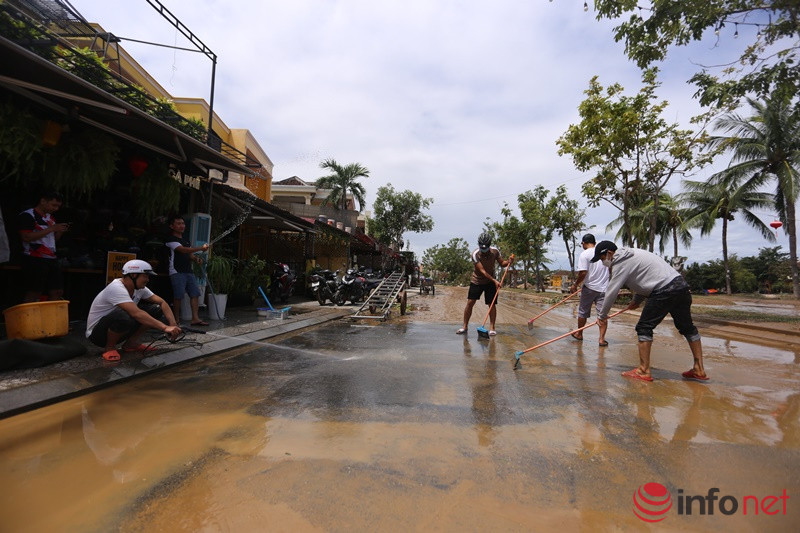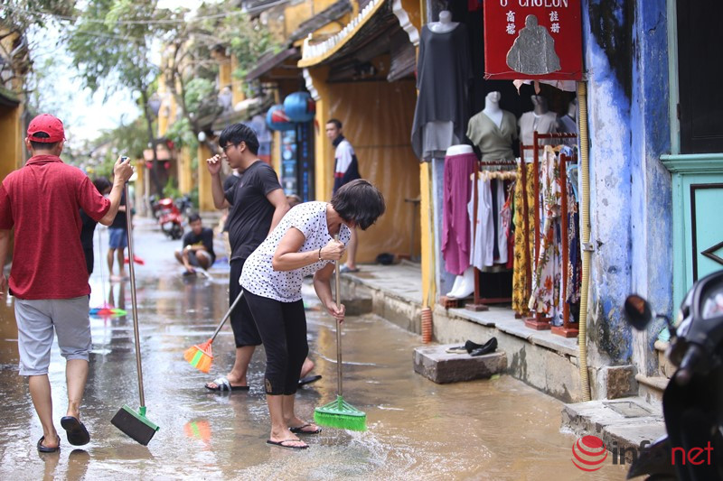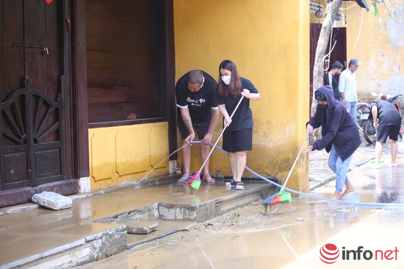 Du khách cùng người dân Hội An xắn tay dọn bùn, rác ngay khi lũ rút