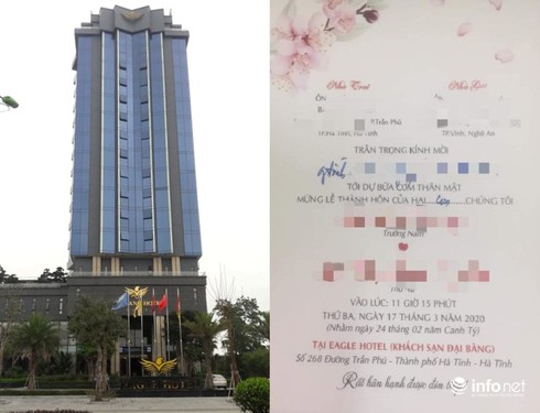 Theo nguồn tin riêng của PV, đám cưới này đặt khoảng 40 bàn (mỗi bàn 10 người) tại Eagle Hotel (Khách sạn Đại Bàng) có địa chỉ tại 268, đường Trần Phú, TP Hà Tĩnh. Tuy nhiên chỉ sử dụng khoảng 20 bàn, tương đương khoảng 200 người tham dự.