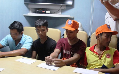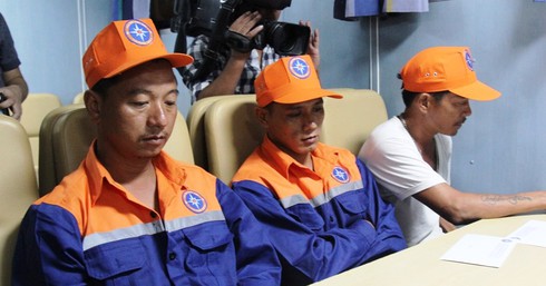 Các ngư dân được đưa vào bờ gồm anh: Phạm Hữu Thanh, Hồ Khắc Đức, Đinh Trọng Hậu, Phạm Hữu Hoàn, Nguyễn Văn Công, Trương Văn Việt, cùng trú tại xã Tiến Thủy, huyện Quỳnh Lưu (Nghệ An); và anh Tô Duy Thái, trú tại xã Quỳnh Nghĩa, huyện Quỳnh Lưu (Nghệ An).